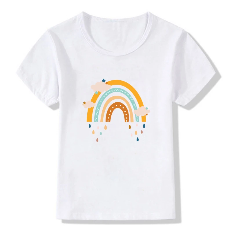 Летняя Радужная мультяшная футболка для маленьких девочек, одежда для мальчиков и девочек, милые детские топы с милым принтом, Детская футболка с коротким рукавом