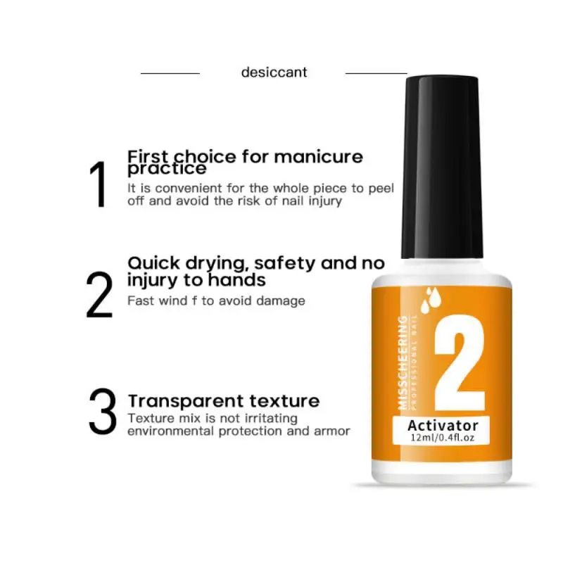 3. Уплотнительный слой: не стирается, долговечен для поддержания яркости поверхности ногтя, не желтеет, легко блестит.