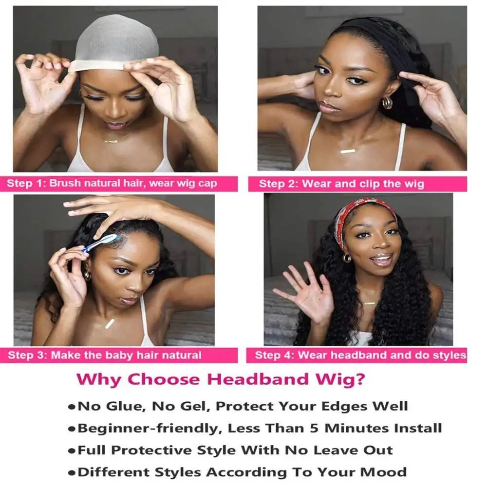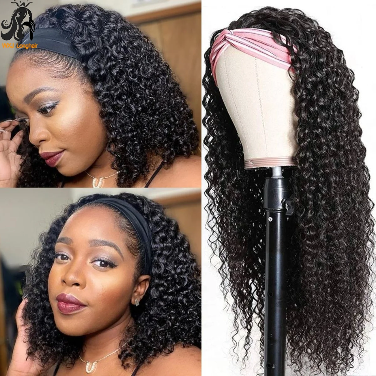 30-дюймовый парик с головной повязкой человеческие волосы кудрявые парики человеческих волос парики из натуральных волос для Для женщин