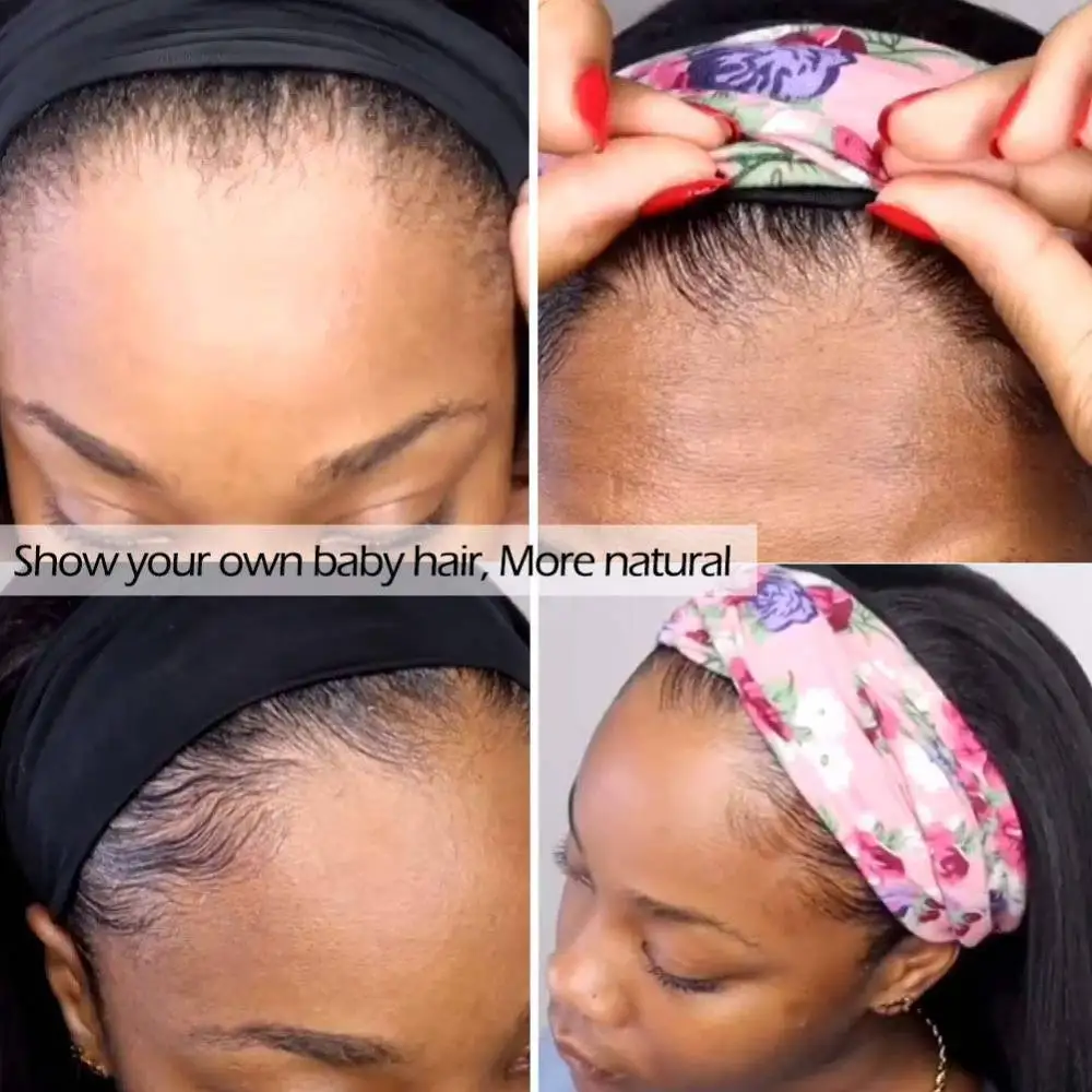 Парик с головной повязкой прямые человеческие волосы парики для чер...