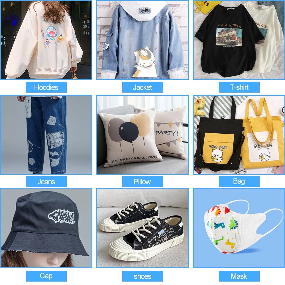 ApplicationT-shirt,cap,sock,apron,mask,eco bag,jeans,pillow,shoes