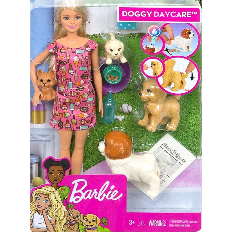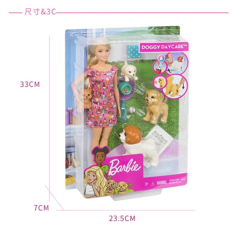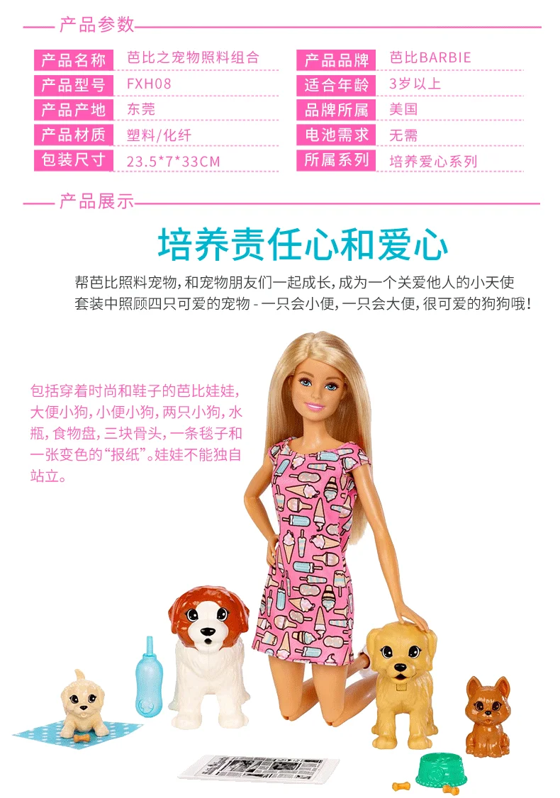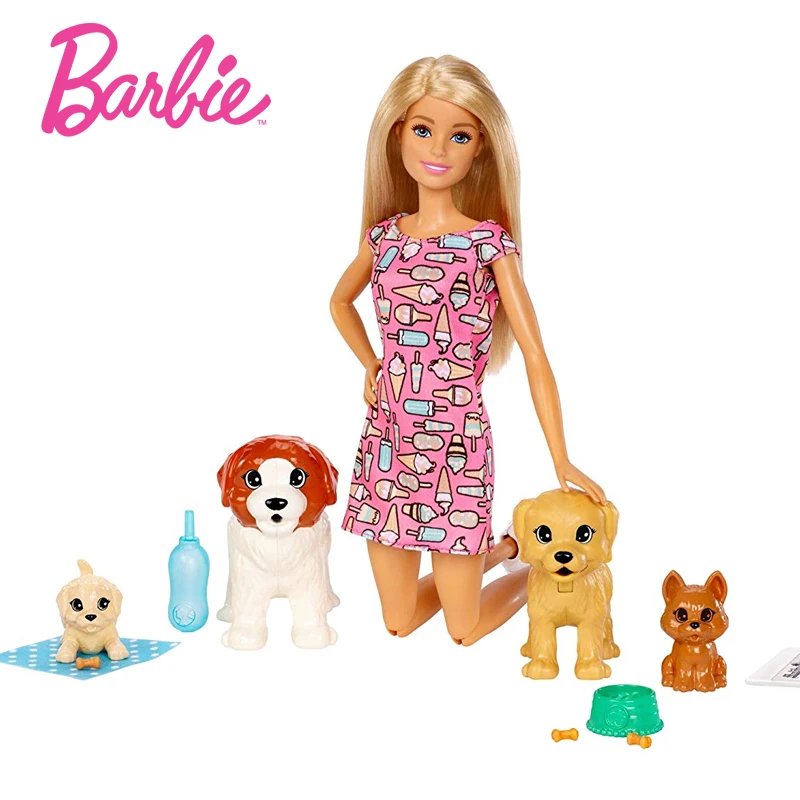 Кукла-сиделка Барби, розовое платье, щенок, 4 домашних животных с аксессуарами, гибкие шарниры, кукольный домик, детский подарок для девочек, FXH08