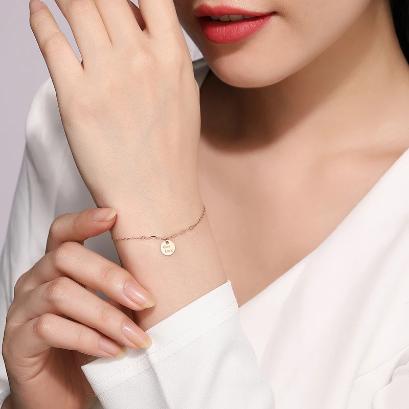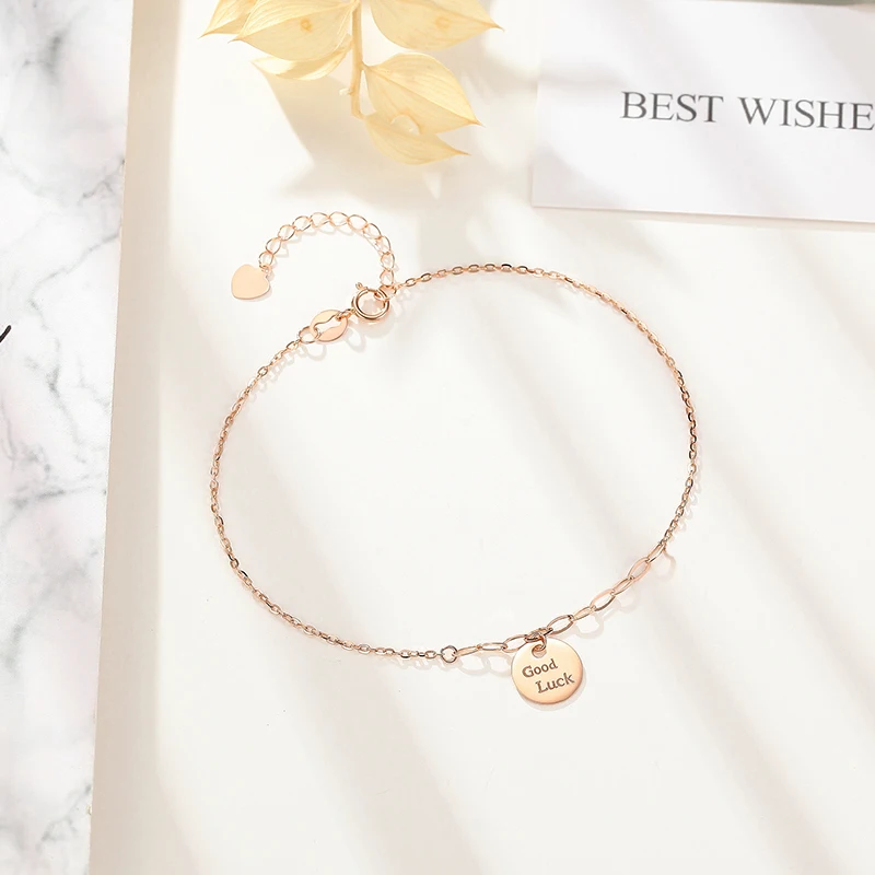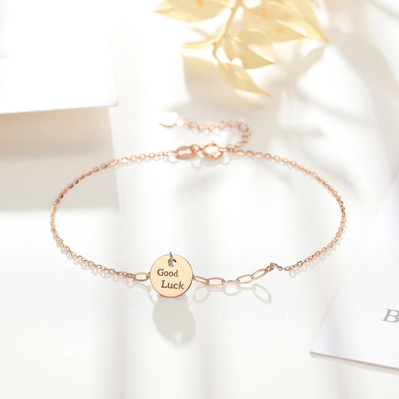 Браслет YUNLI из настоящего 18-каратного золота, подвеска на удачу в стиле Ins, регулируемая цепочка для женщин, ювелирные изделия в подарок BR003