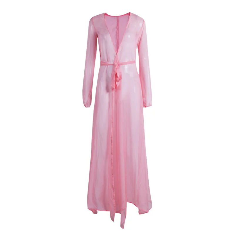 Женское сексуальное бикини, накидки, шифоновая сетчатая однотонная одежда для плавания, Спортивная Женская туника с поясом, длинные парео