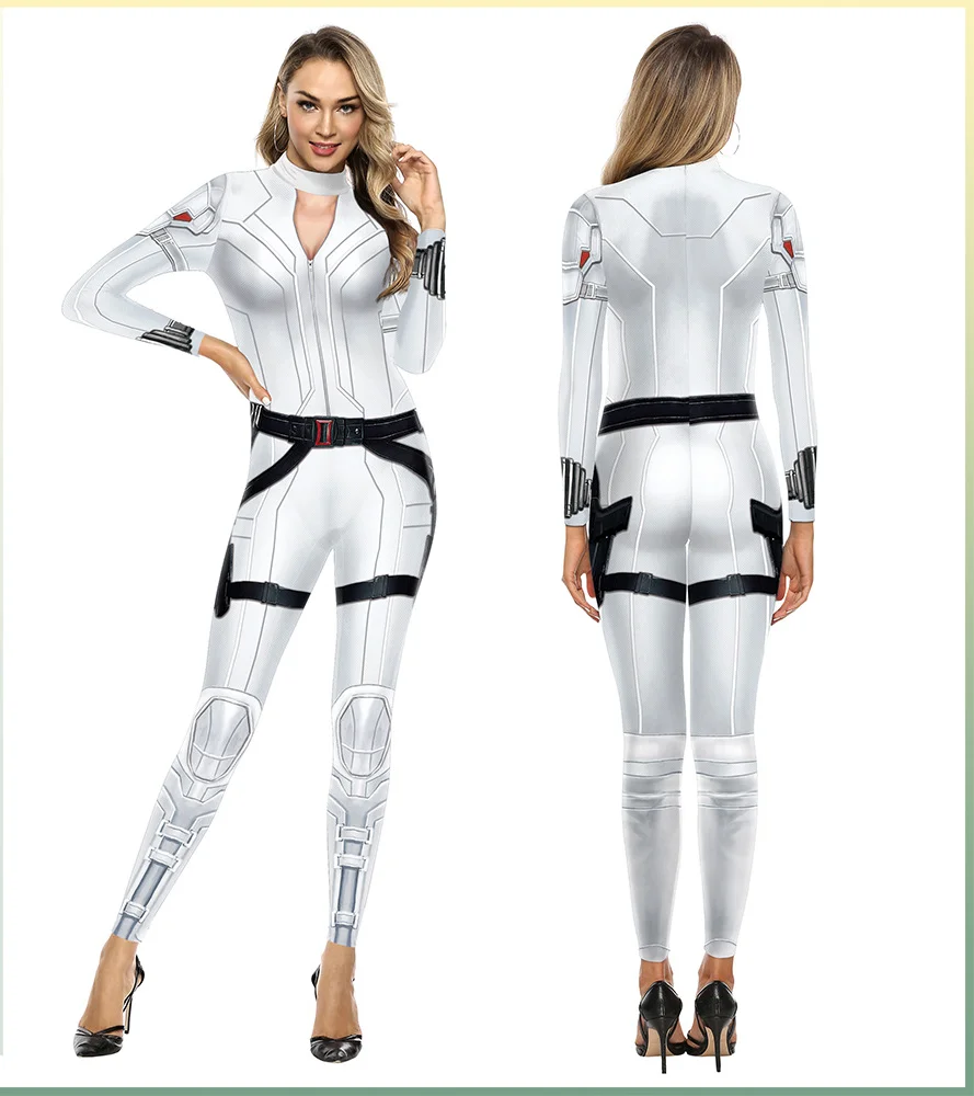 Европейский и американский Новый 2021 Косплей Черная Вдова белый военный костюм 3D цифровая печать цельный костюм
