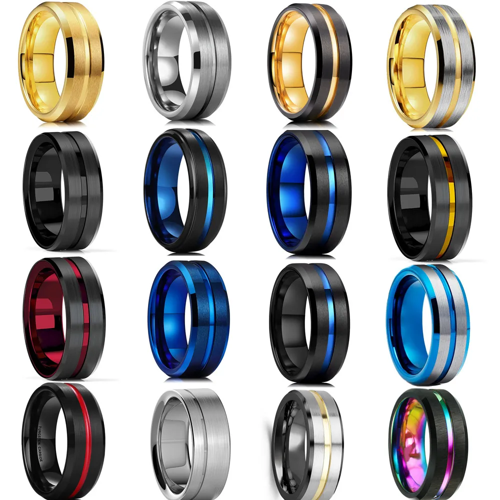 2021 новые мужские s 8 мм серебряные вольфрамовые Свадебные кольца красные золотые канавки скошенные края кирпичные узоры матовые кольца из нержавеющей стали для мужчин