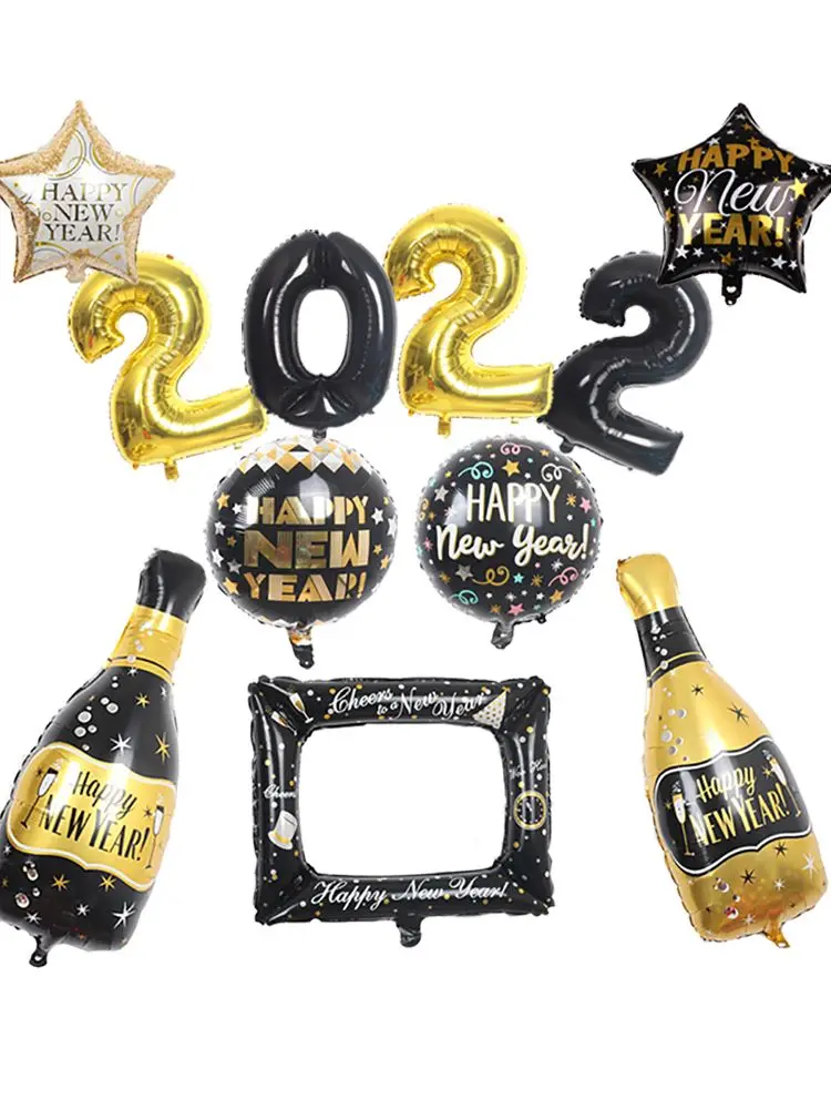 2022 фольгированные шары с Новым годом, винная бутылка, звезда, зве...