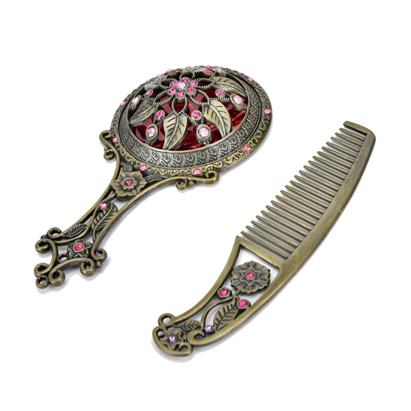2 шт.компл. 2020, бронзовые карманные зеркала в стиле ретро, пустотелые косметические компактные зеркальные расчески в подарочной коробке, случайный цвет