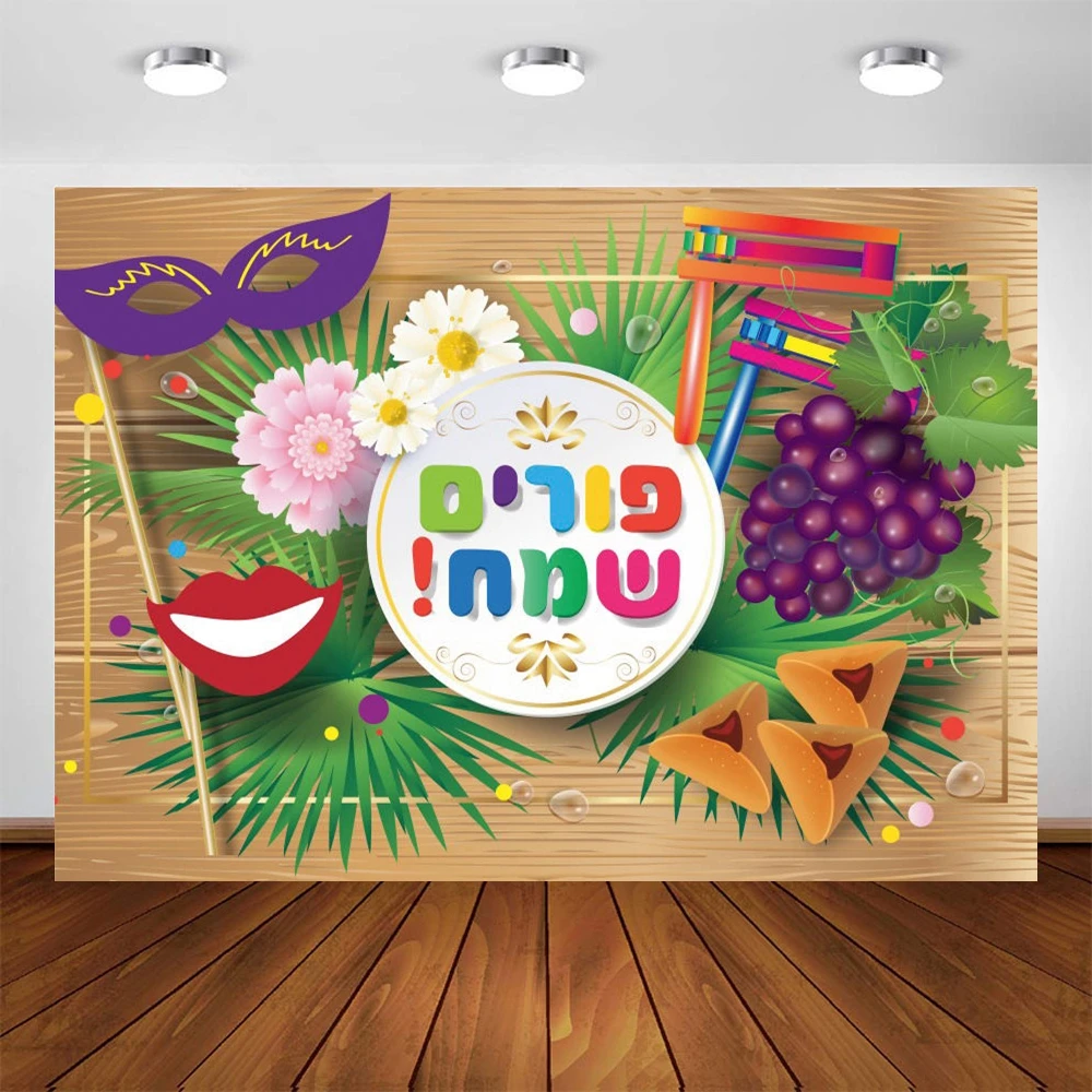 Счастливый Пурим, еврейский фон для фотосъемки, деревянная доска, цветок, тропические фрукты, ладони, фон для вечеринки, фотография для фотостудии