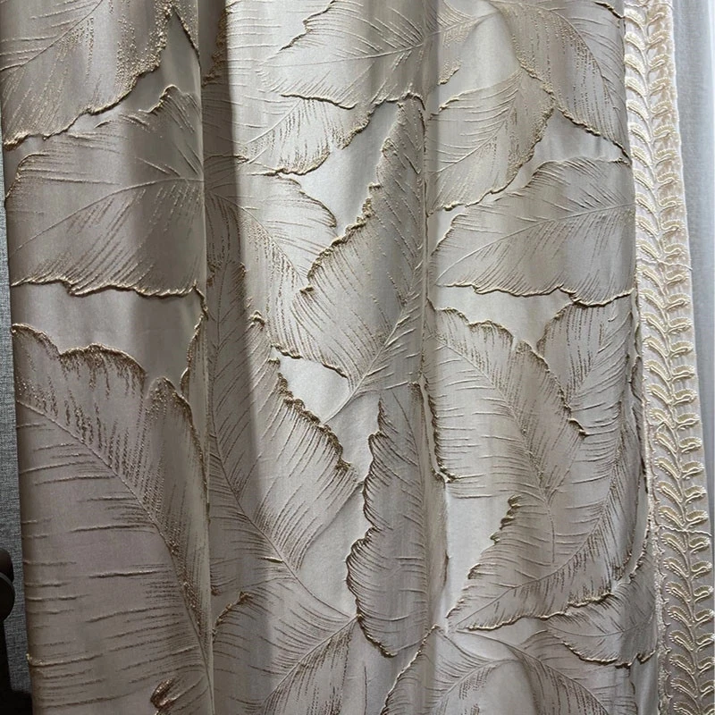 Роскошные тисненые Золотые Нитки, листья, бежевые занавески, высокоточные жаккардовые тканевые занавески для гостиной, спальни, виллы, домашний декор