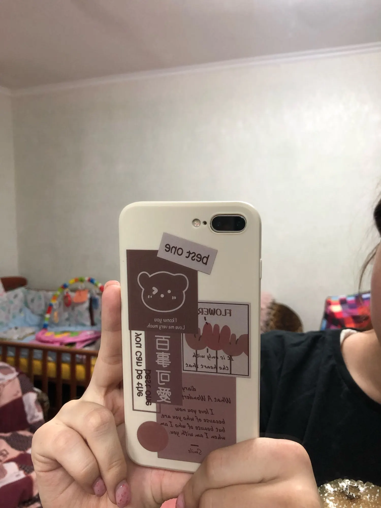 Хороший чехол. Рисунок четкий, немного ощущается наощупь. Камеры достаточно глубоко, над экраном боковой бортик немного выпирает.