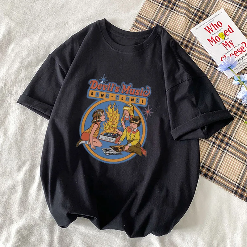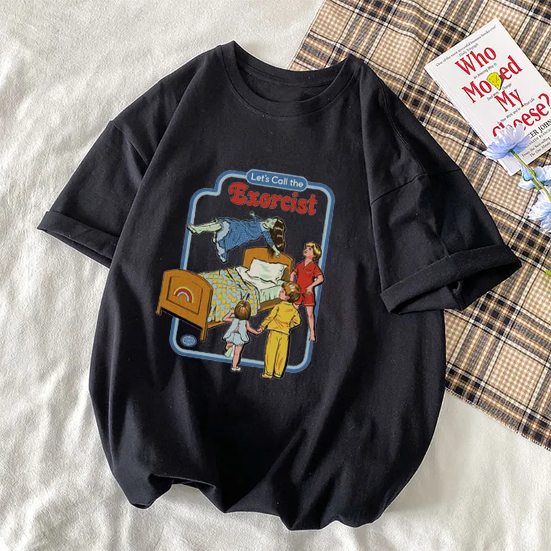 Футболка женская оверсайз в готическом стиле с изображением аниме Let's Coll The Exorcist, черная футболка в стиле Харадзюку, лето 2021