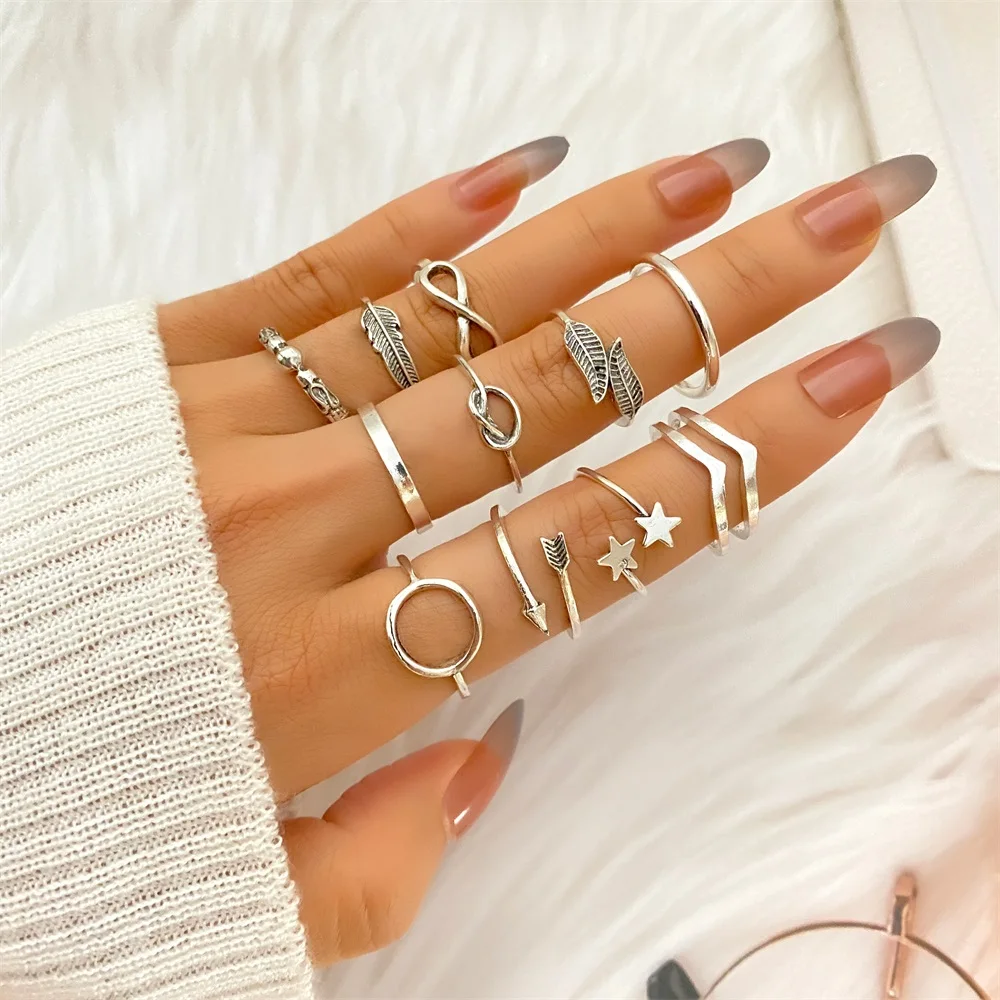 IFMIA 11 шт.компл. кольца на палец серебряного цвета в винтажном стиле с листьями и звездами женские кольца с узлом кольцо 2021 трендовые ювелирные изделия Свадебные подарки