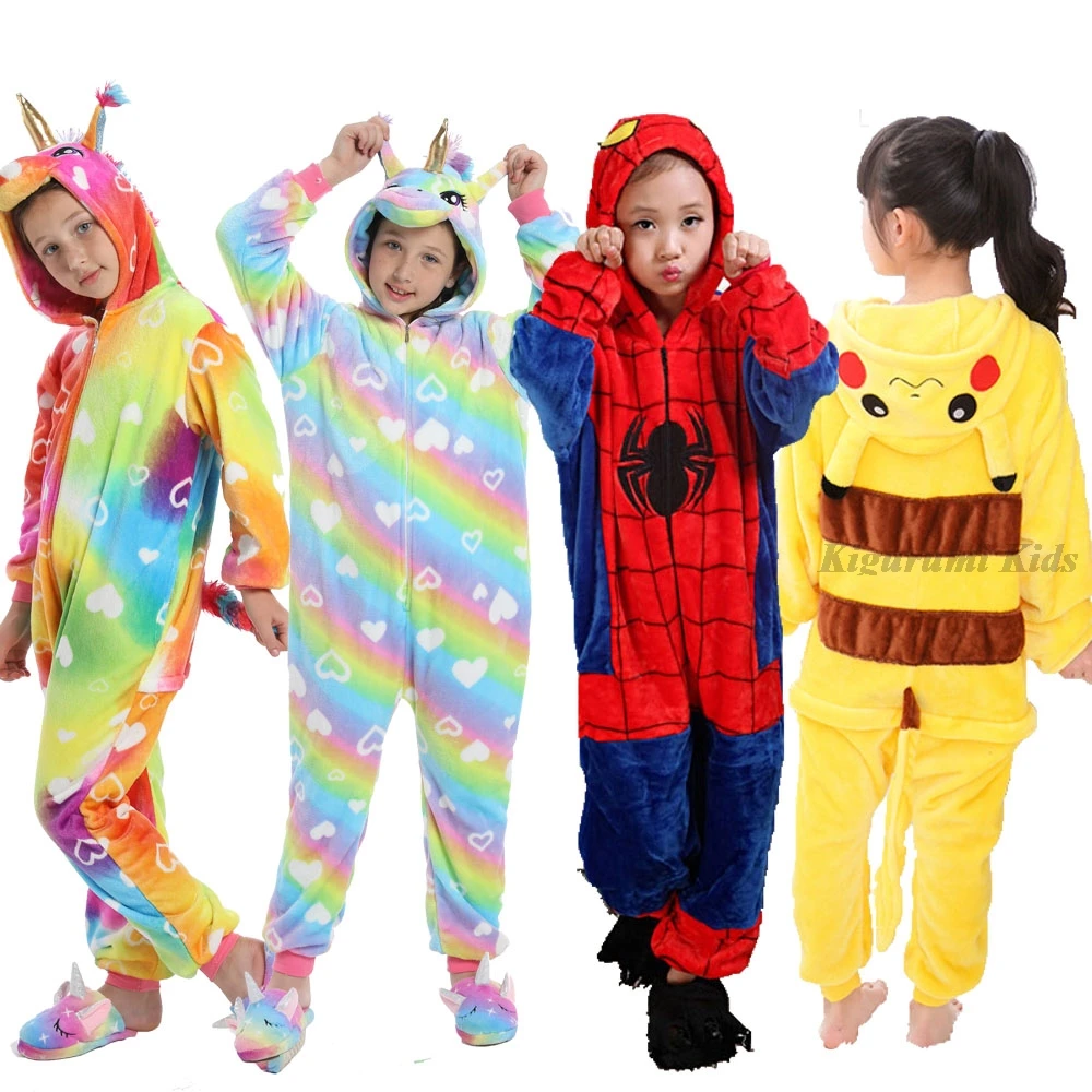 Детский комбинезон-кигуруми в виде паука, костюм в стиле аниме, пижама в виде единорога для детей, зимняя Пижама, комбинезон в виде животных, домашняя одежда для мальчиков и девочек