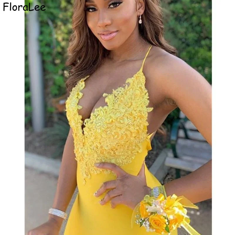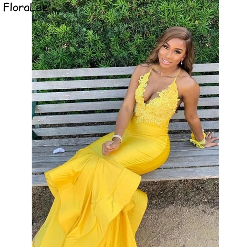 Желтые вечерние кружевные шелковые атласные платья со шлейфом и юбкой-годе