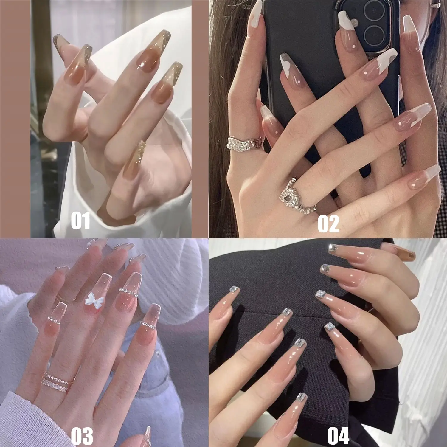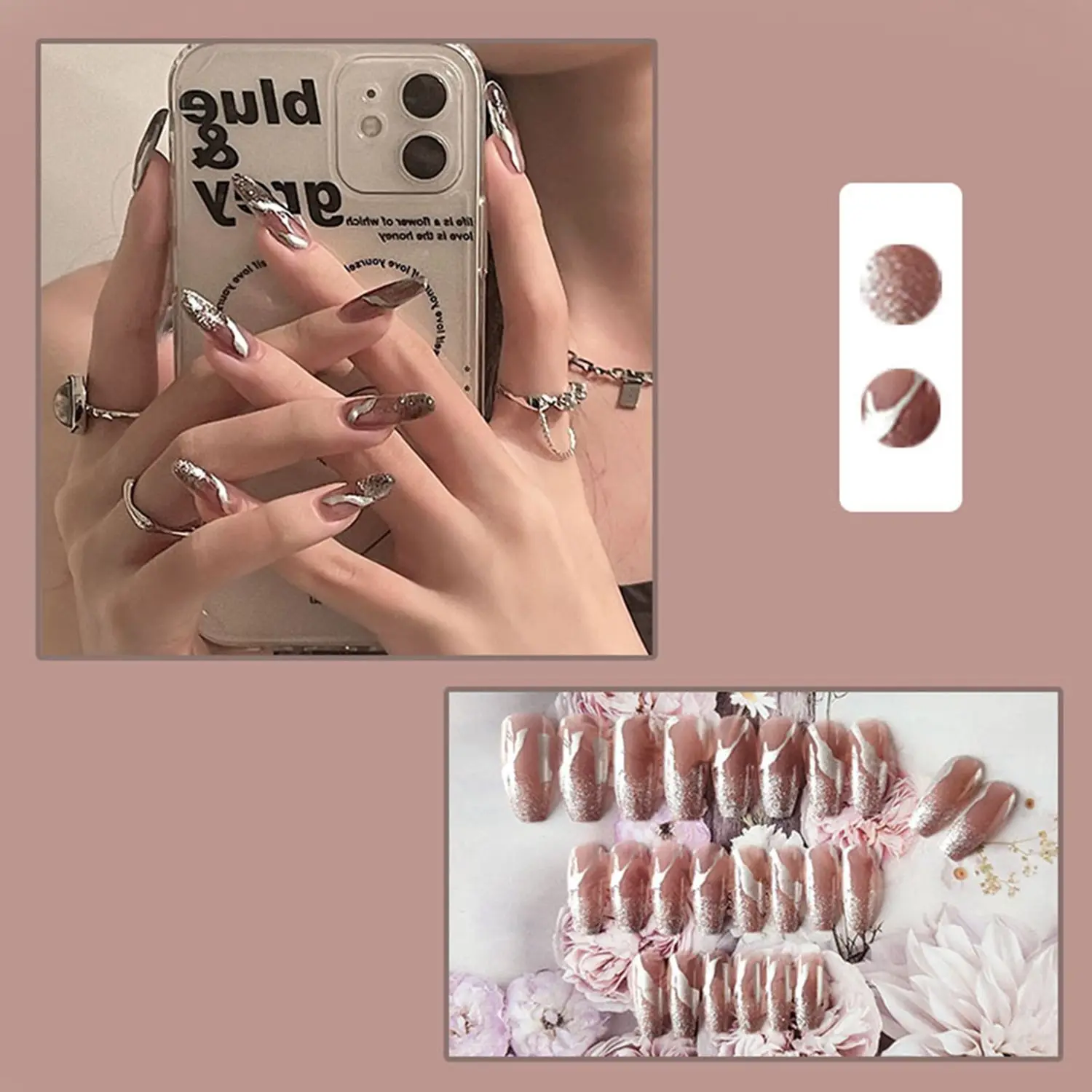 24 шт. блестящие съемные накладные ногти Длинные накладные ногти ба...
