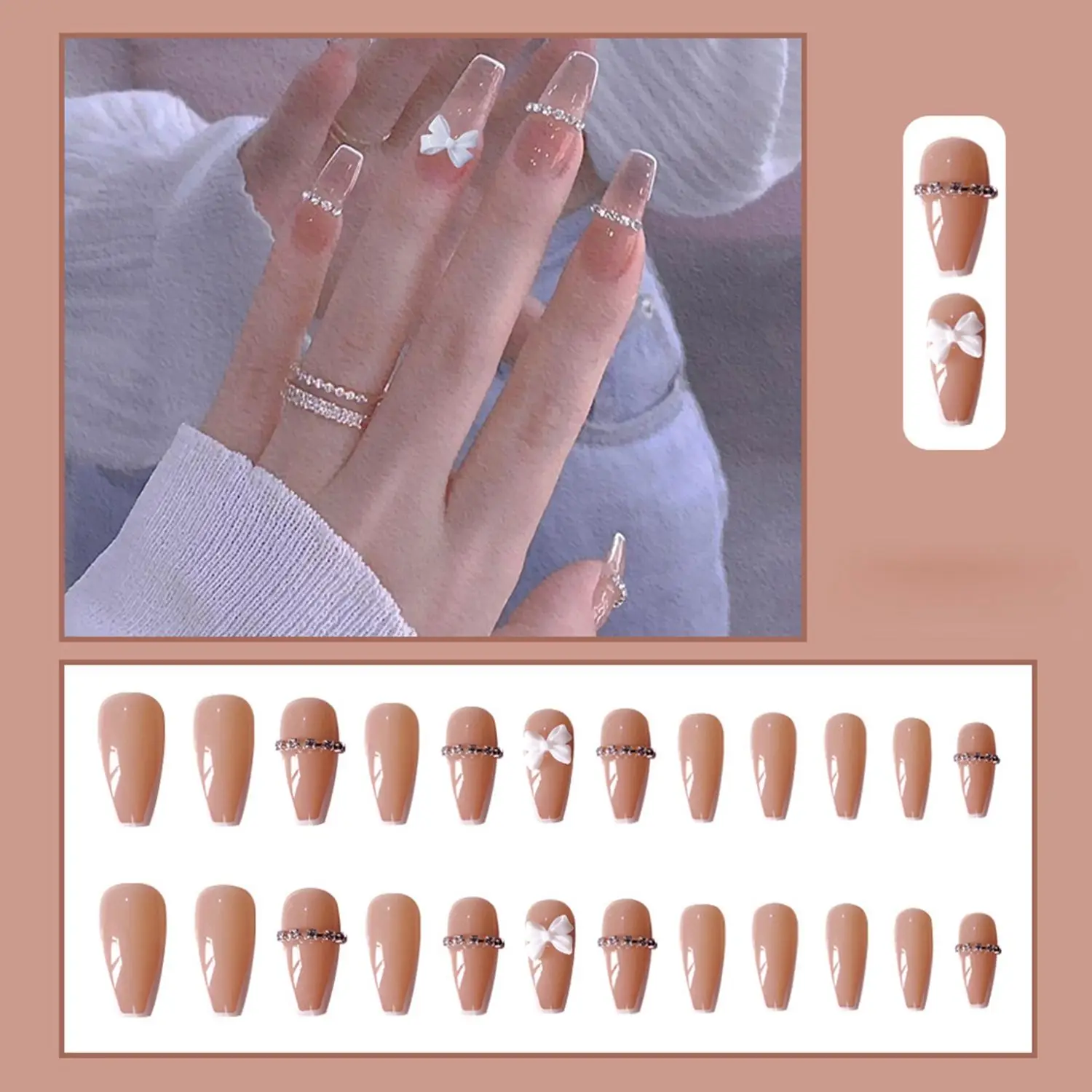Накладные ногти для стразы, 24 шт., розовые длинные накладные ногти...