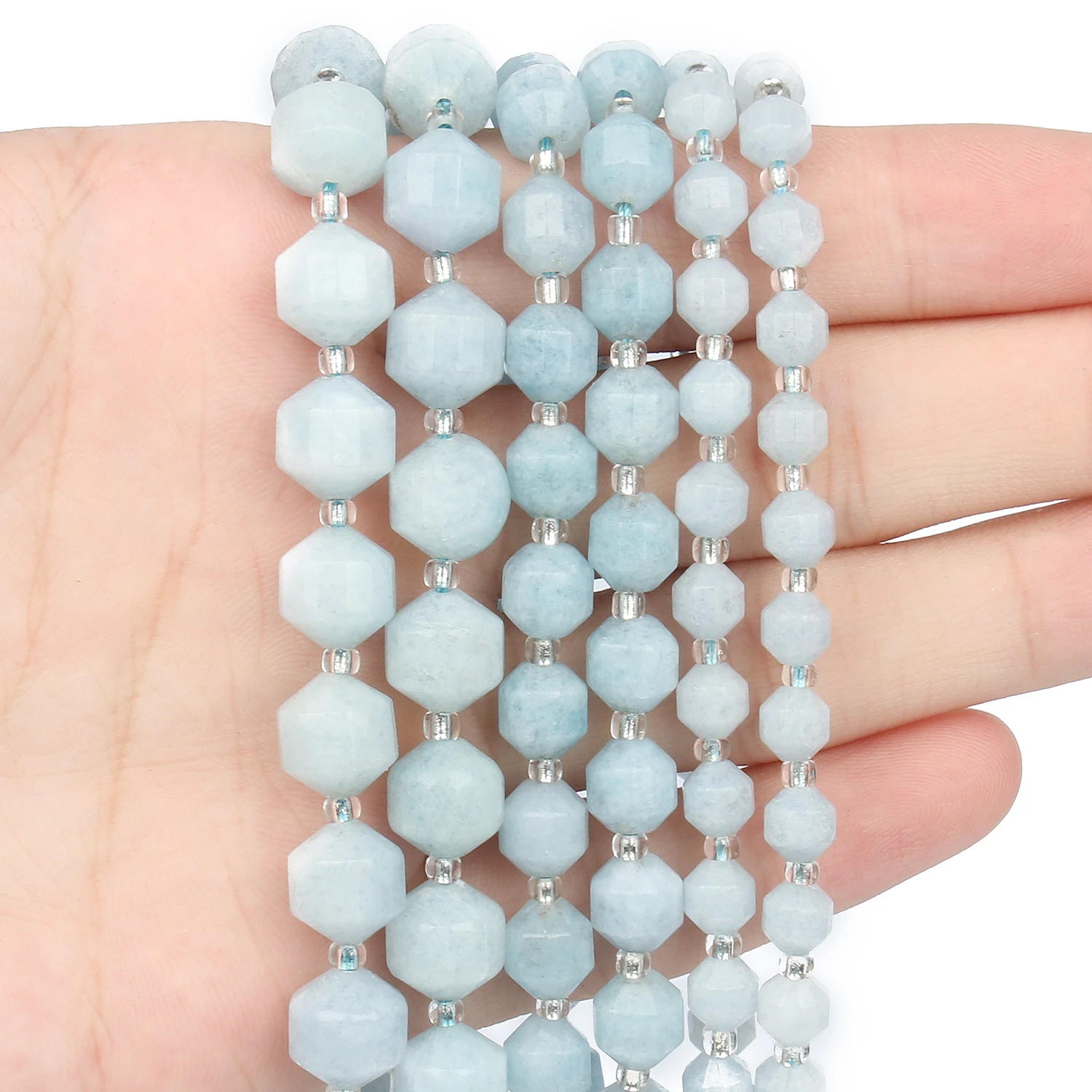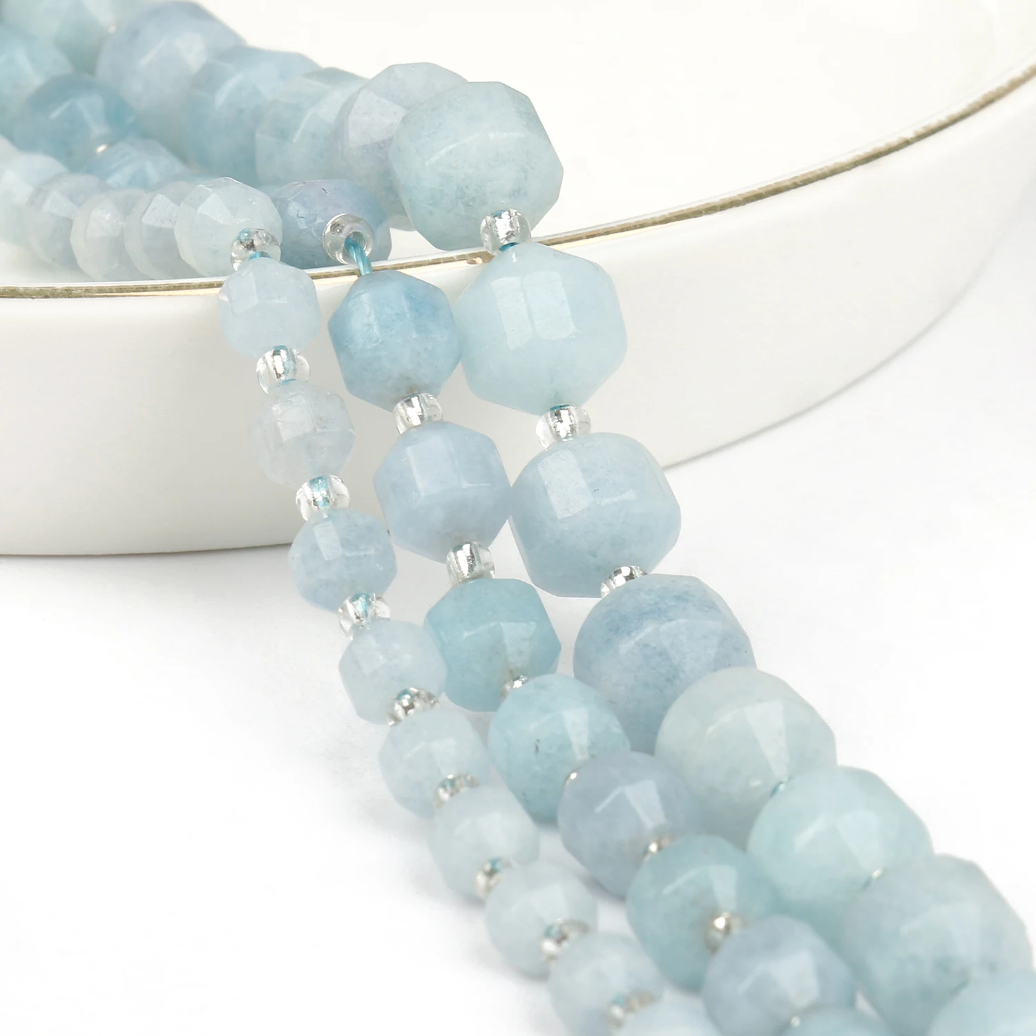 Название:6/8/10 мм Гранёные с одной и плоские с другой стороны натуральный голубой Аквамариновый камень бусы из драгоценных камней Свободные Spacer Бусины для самостоятельного изготовления ювелирных изделий браслет ожерелье 15 дюймов