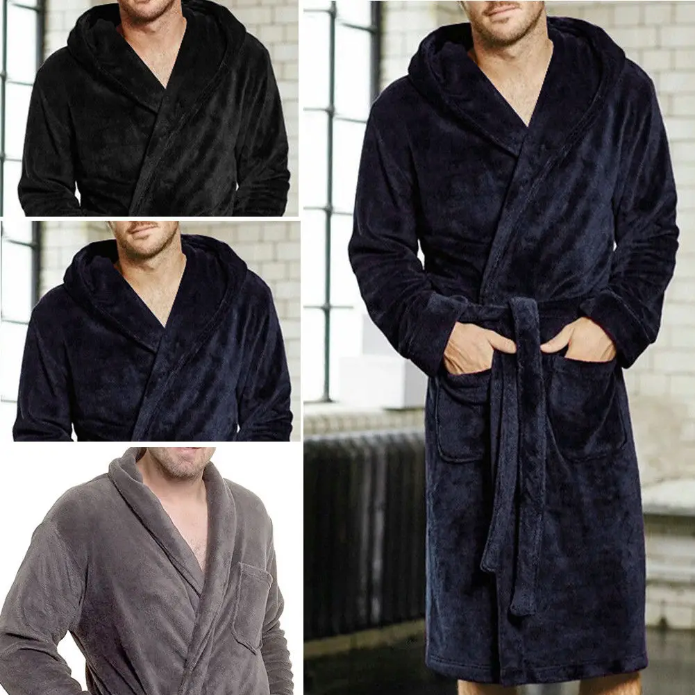 Мужской супер мягкий флисовый халатБанный халат черный синий серый ...