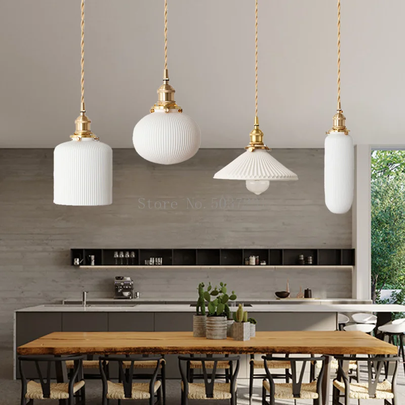 Японские керамические подвесные светильники в стиле ретро, скандинавский простой подвесной светильник для ресторана, лампа для спальни, прикроватного столика, коридора, латунная лампа для зонта