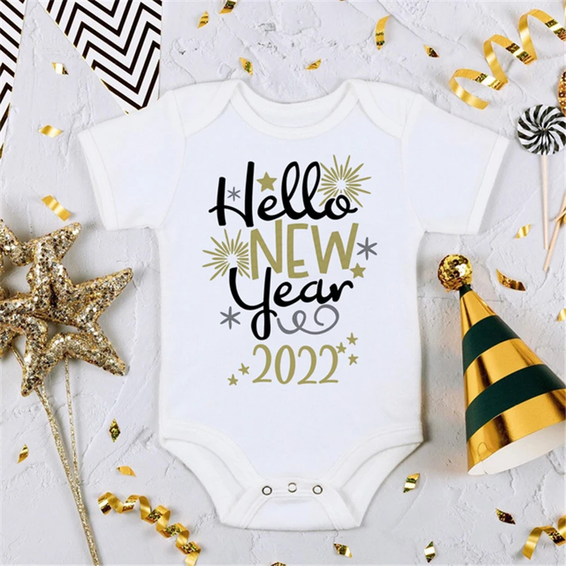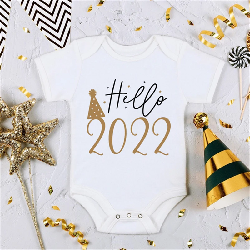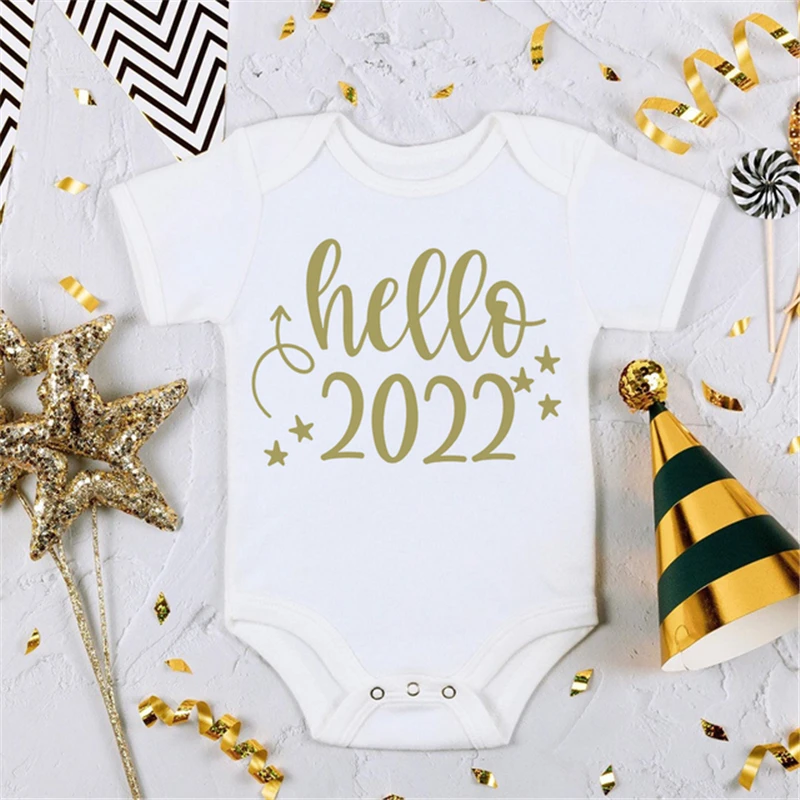 DERMSPE Hello 2022 новогодний милый детский комбинезон с принтом для младенцев и малышей унисекс детская одежда мой первый Новогодний джемпер с коротким рукавом