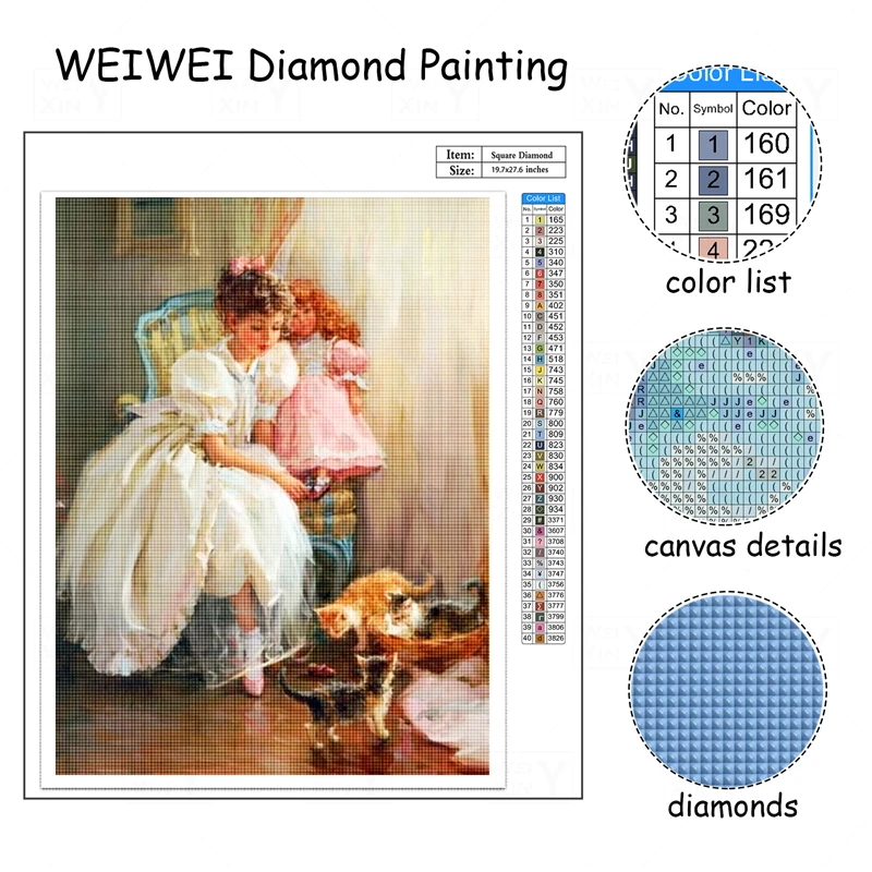 WEIWEI полноразмерная алмазная живопись мультяшная кукла 5D картина...