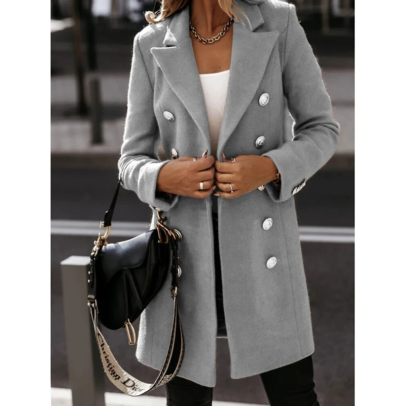 Осенне-зимнее двубортное шерстяное пальто для женщин, офисное женское городское элегантное приталенное пальто с воротником, женские длинные куртки LFFMHMT
