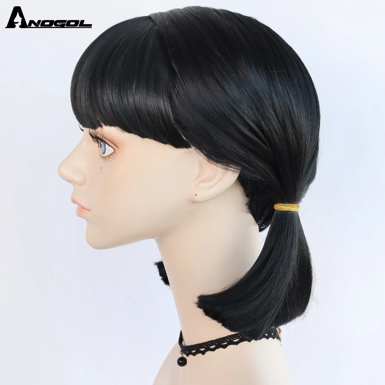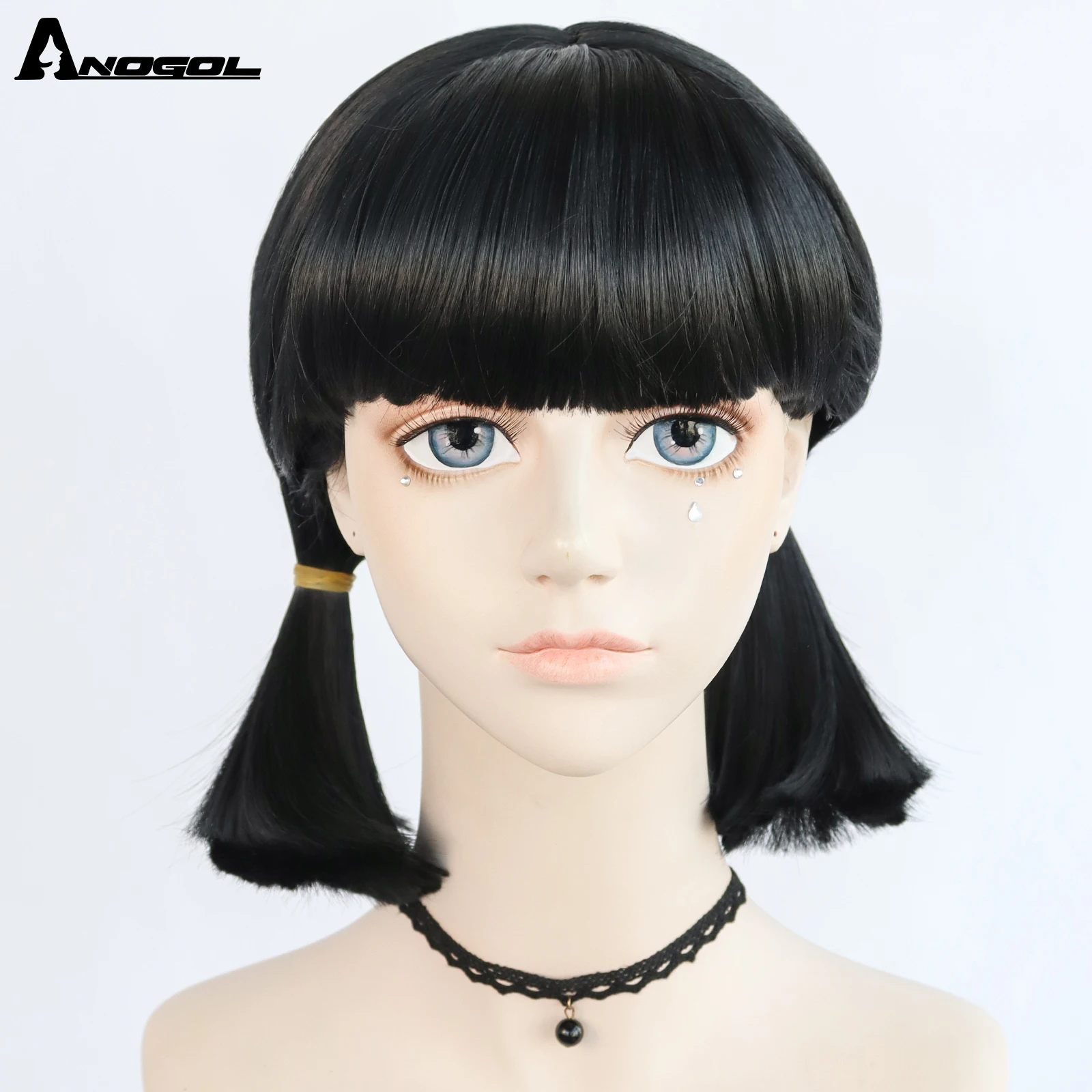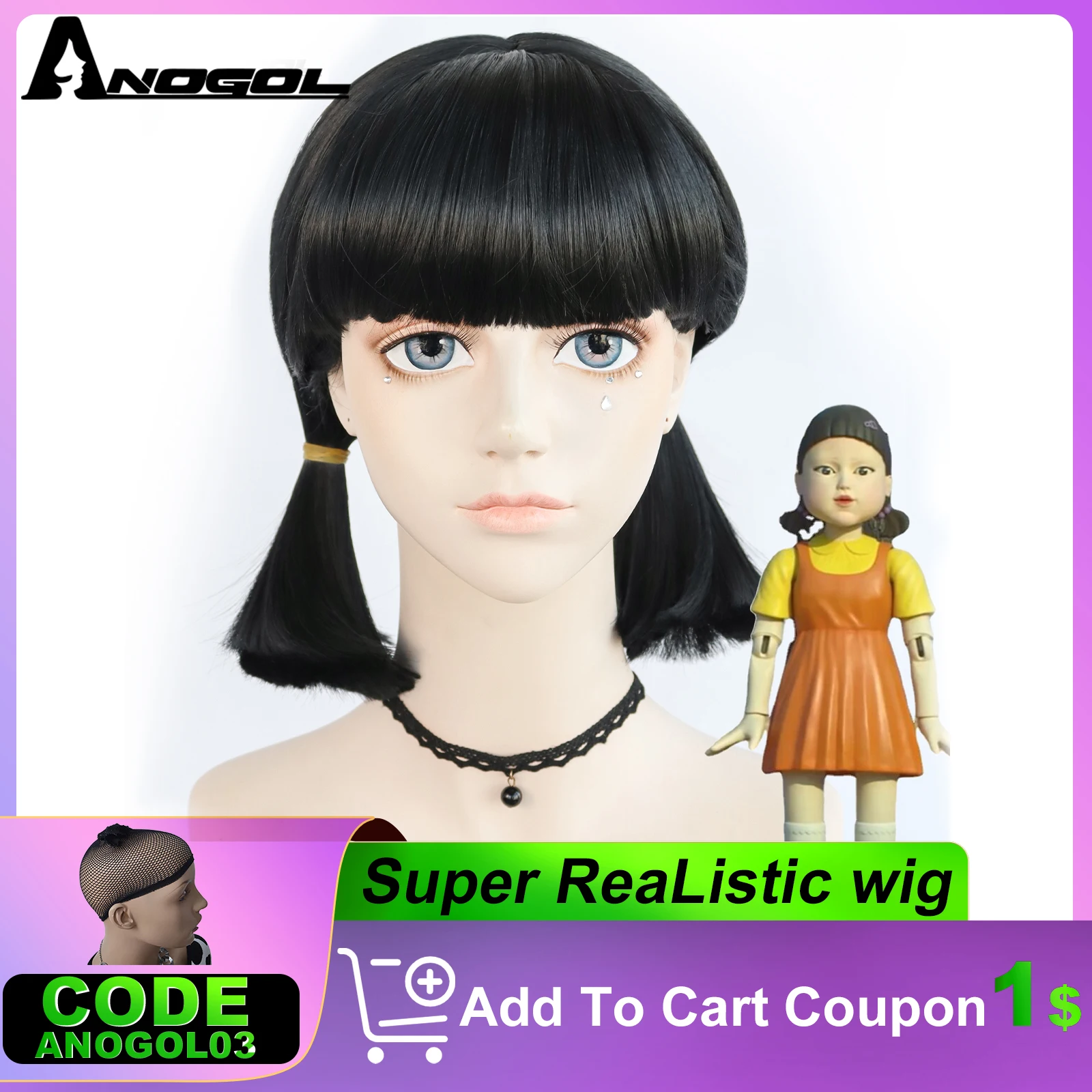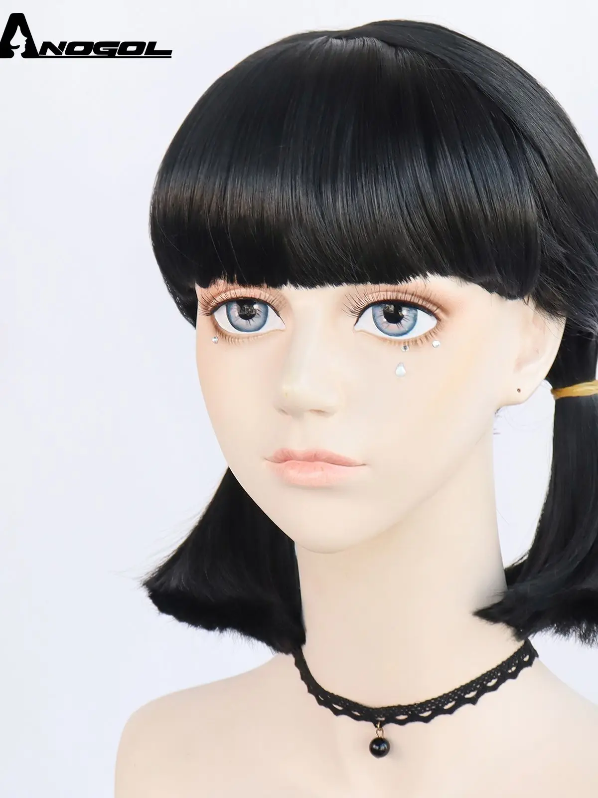 ANOGOL синтетические парики для косплея страшная кукла косички конские хвосты парик для кальмара игра короткий черный парик с челкой для хеллоуина костюм