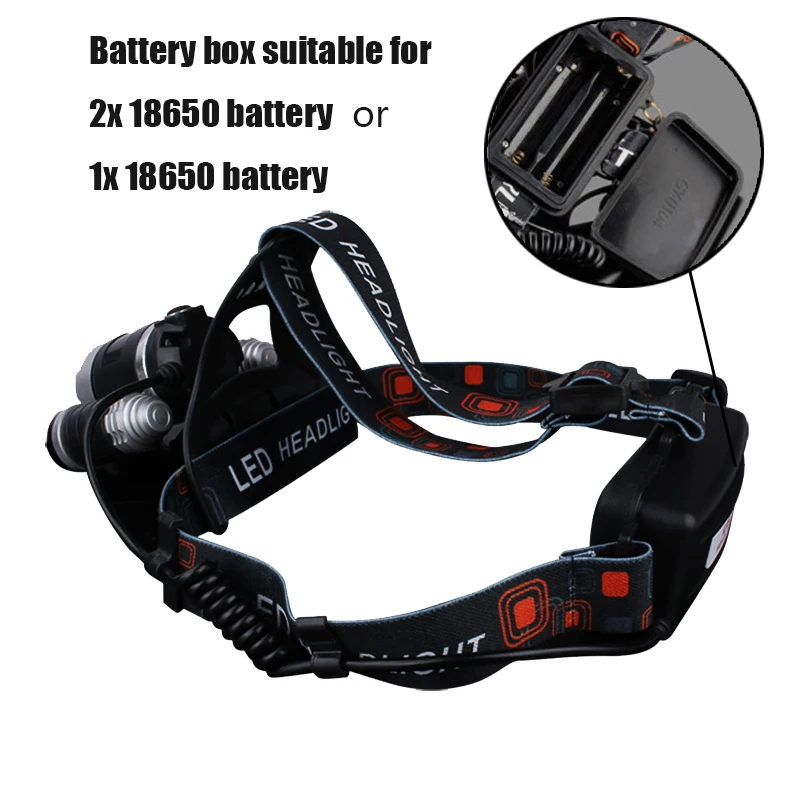 Светодиодный налобный фонарь XM-T6, аккумуляторная батарея 2*18650, 40 Вт, люмен