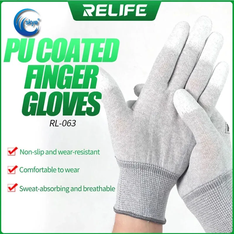 Антистатические перчатки RELIFE RL-063, противоскользящие рабочие электронные перчатки ESD с полиуретановым изоляционным покрытием, защита пальцев для ремонта телефонов
