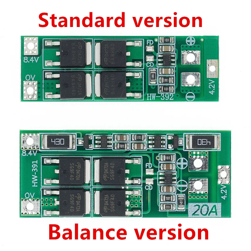 2S 20A 7,4 V 8,4 V 18650 литиевая батарея Защитная плата BMS плата Стандартный баланс 2S 10A 7,4 V