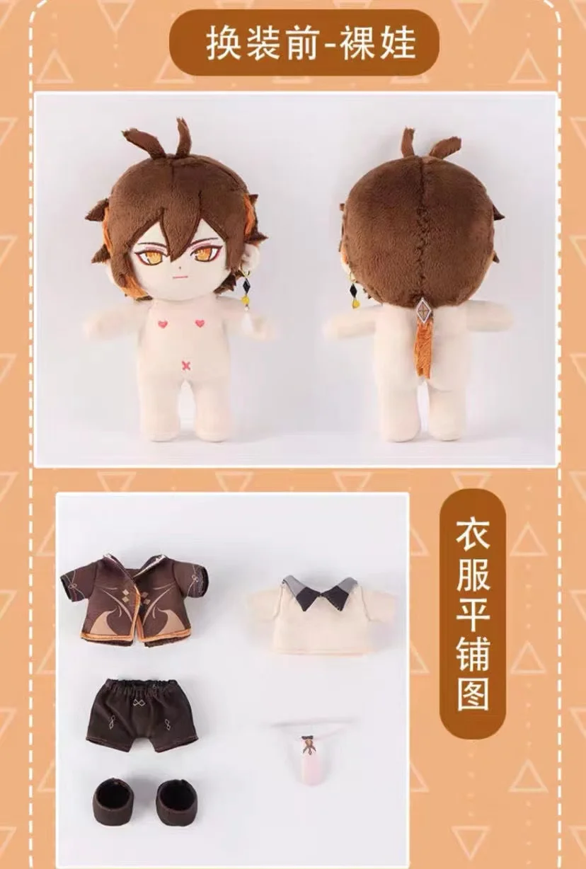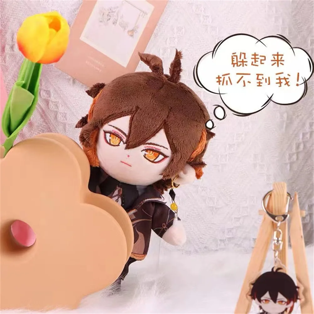 20 см Genshin Impact Cosplay Zhong Li стоячие плюшевые игрушки Съемная одежда Аниме игра плюшевая кукла Хэллоуин Рождество подарок для детей