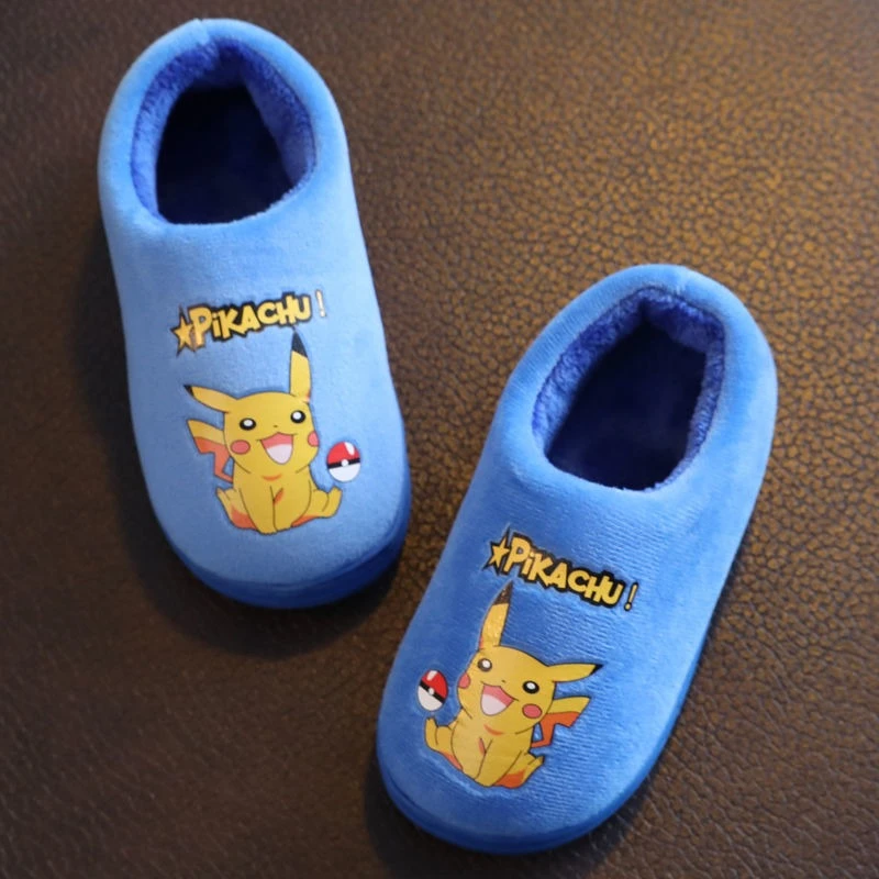 Зимние тапочки с покемоном Пикачу, детская обувь для маленьких дево...