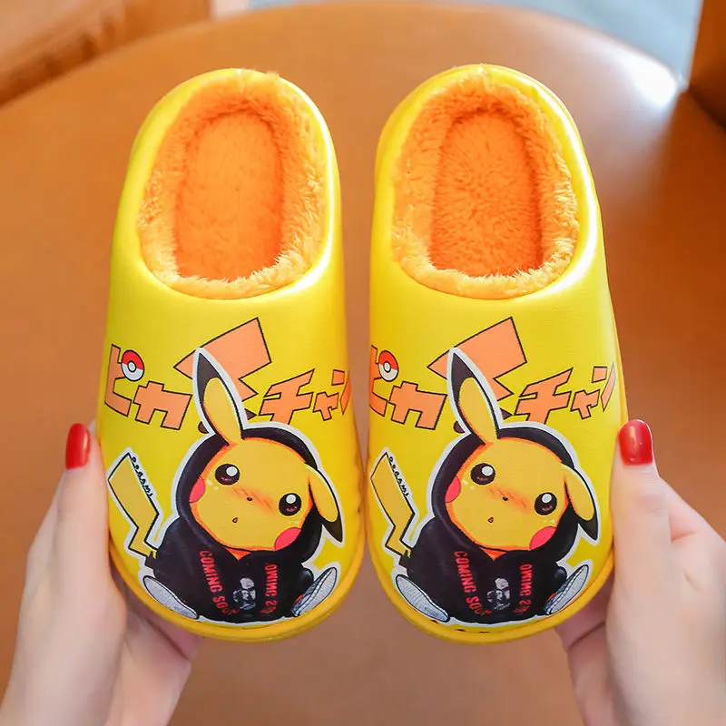 Туфли Покемон Пикачу тапочки для девочек Теплые детские меховые дом...