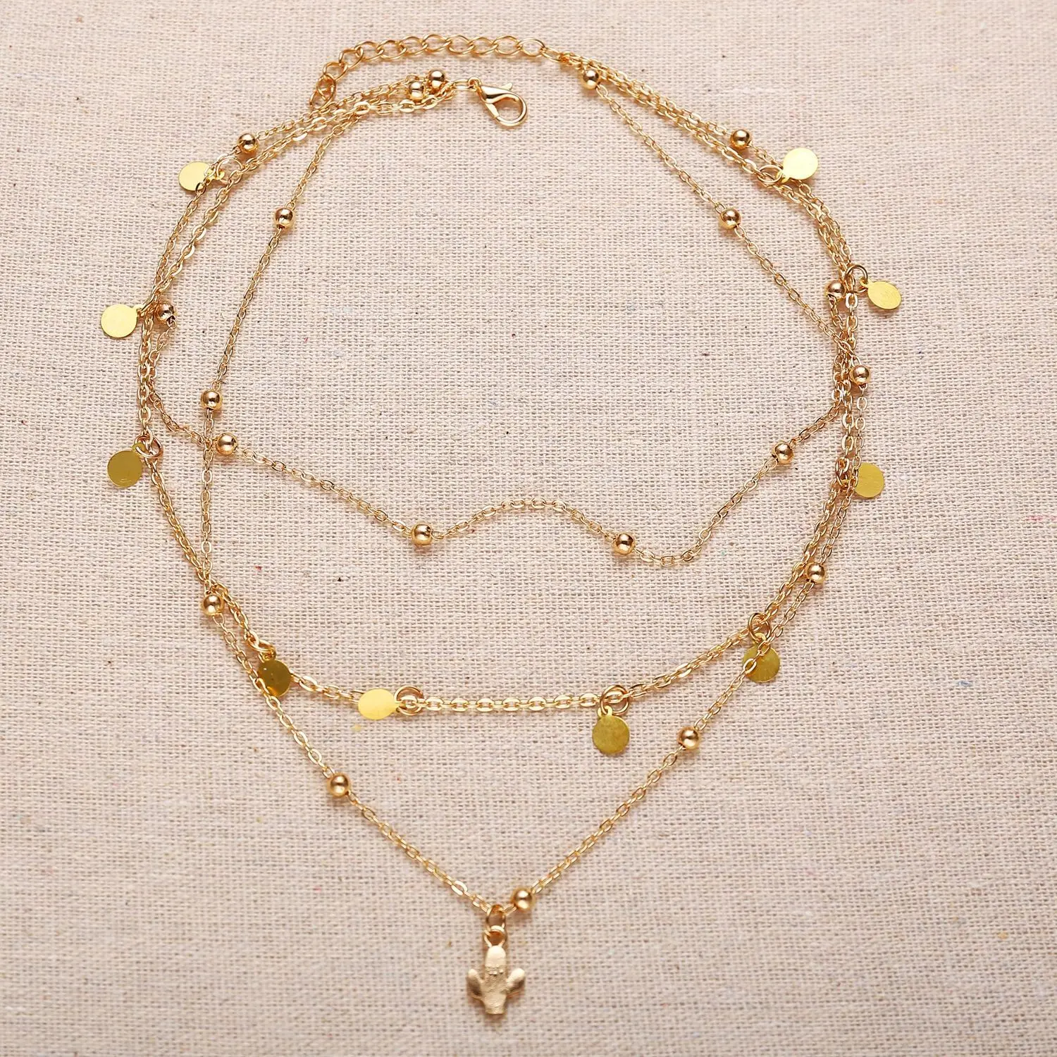 Креативное многослойное ожерелье Delysia King с золотыми кактусами и блестками