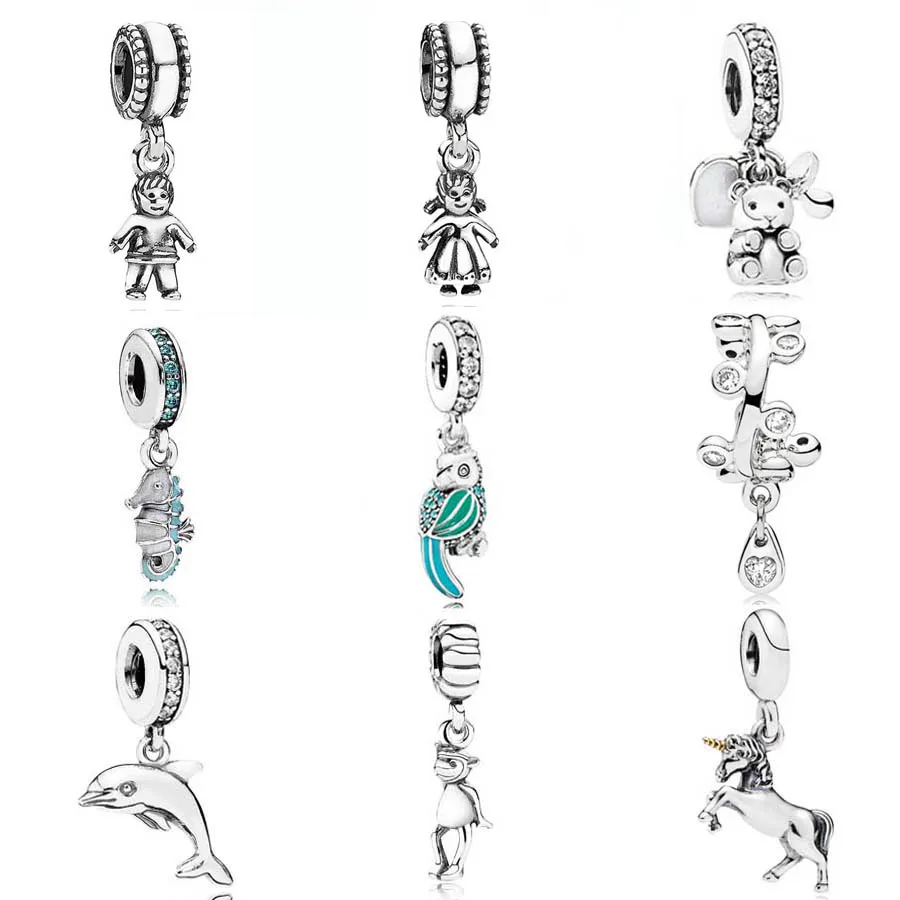 Мальчик и девочка Тропический попугай Детские сокровища Дельфин единорог кулон бисер Подходит для браслета Пандора искусственное серебряное очаровательное ювелирное изделие