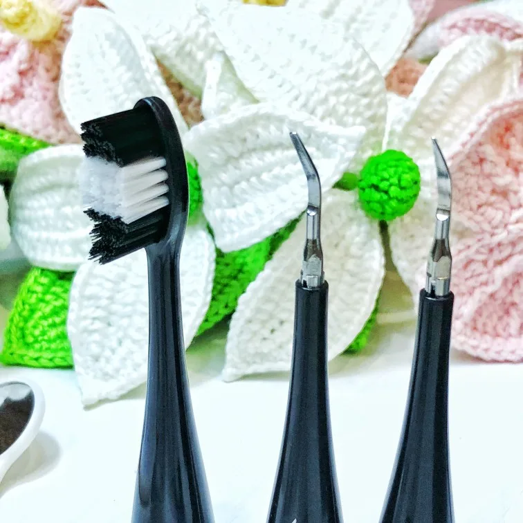 4. Несколько аксессуаров-три сменные насадки для зубных щеток используется для ежедневной чистки зубов, а две высококачественные сменные головки из легированной стали могут использоваться для удаления зубного камня, пятен чая и пятен от дыма.