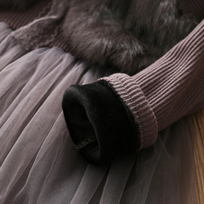 Платье для девочек, теплые зимние платья с мехом на Рождество и осе...