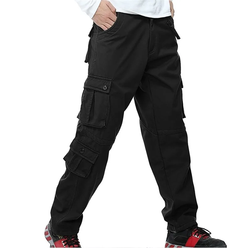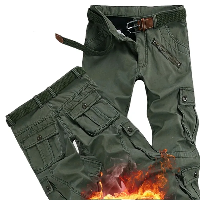 Мужские зимние Утепленные флисовые брюки карго тактические брюки комбинезоны мужские военные хлопковые повседневные брюки теплые Свободные мешковатые штаны для бега