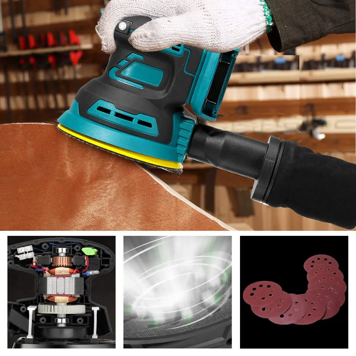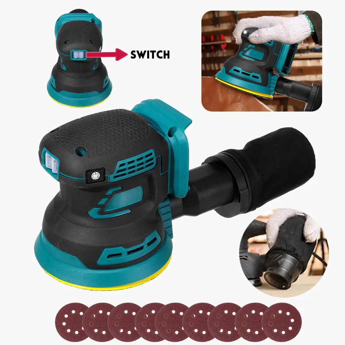 Бесщеточная орбитальная шлифовальная машина, шлифовальная машина для дерева, электрическая шлифовальная машина, совместимая с батареей Makita 18 в