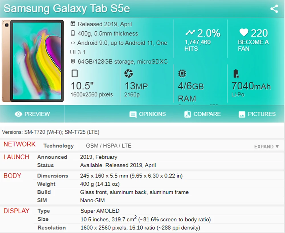 Номер моделиSamsung Galaxy Tab S5e 10.5 2019