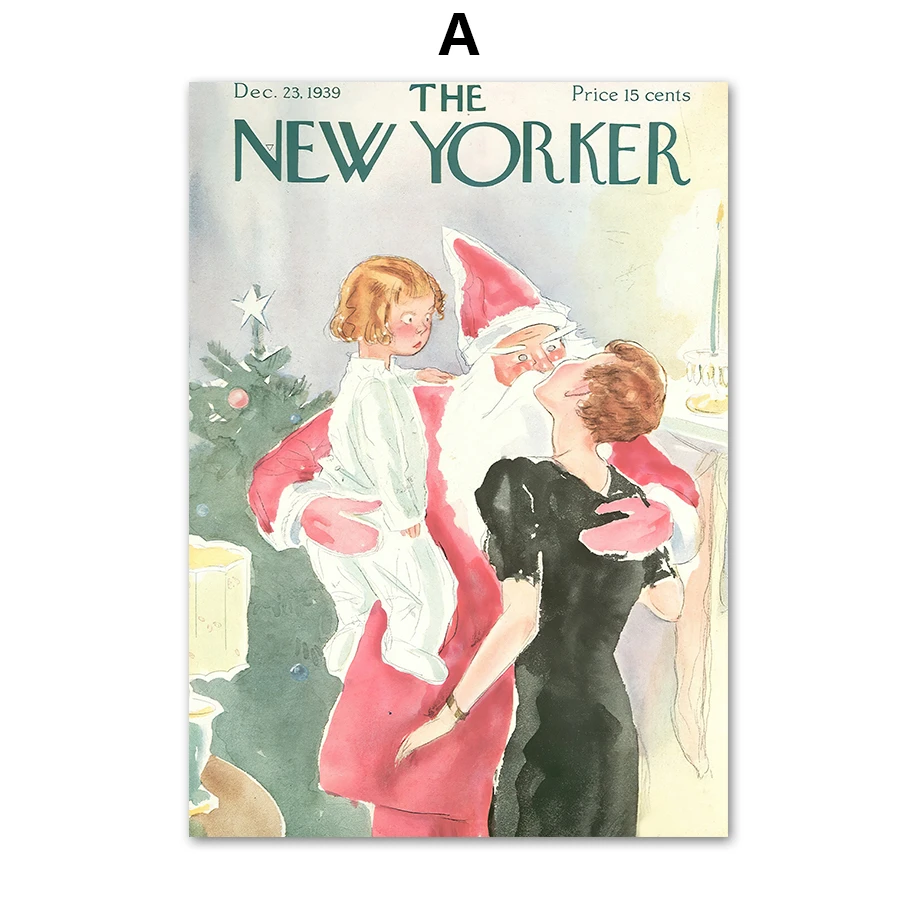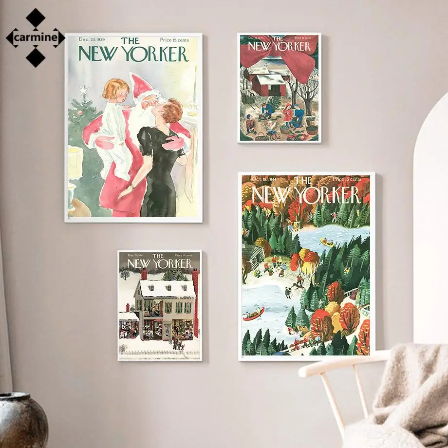 Новогодняя Настенная картина New Yorker на холсте, винтажная Обложка для журнала, плакаты и принты, Современная фотография, Декор для дома