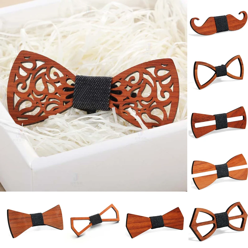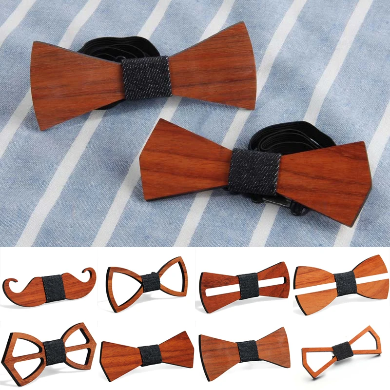 Унисекс деревянный галстук-бабочка выдолбленные резные ретро деревянные шеи регулируемые винтажные