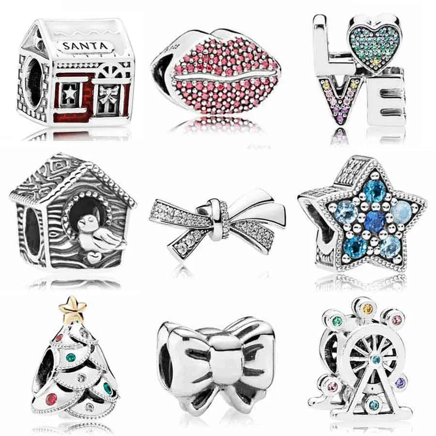 Блестящие бусины в виде радуги, слов, любви, ярких звезд, праздничное дерево, подходит для браслета Пандоры, серебряные подвески, ювелирные изделия