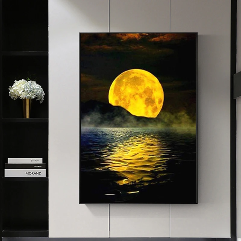 Абстрактная Современная желтая Красная Луна на море Картина на холсте настенные художественные принты и плакаты настенные картины для гостиной