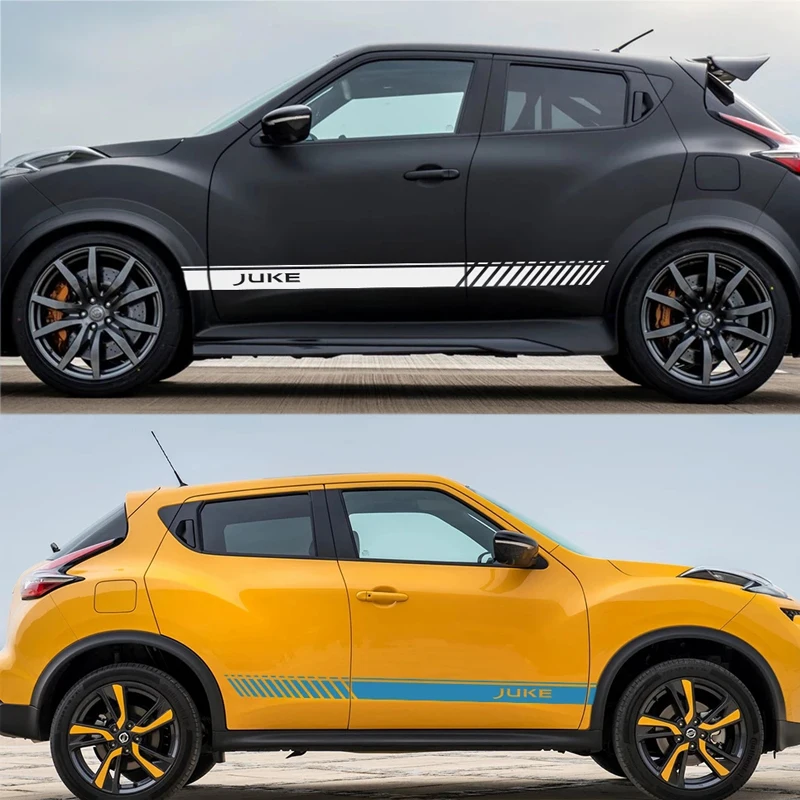 2 шт., боковые Стикеры для Nissan Juke Auto Racing, спортивные длинные полосы, декор тела, аксессуары для тюнинга