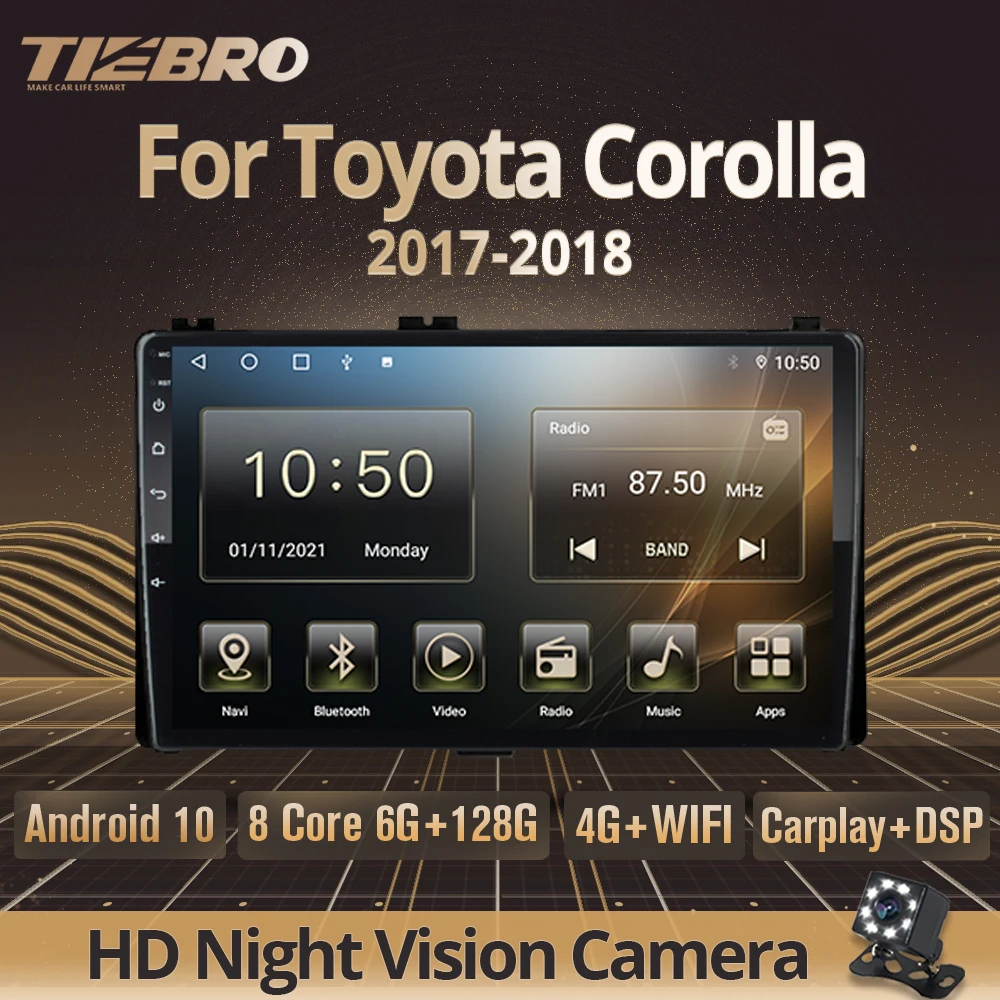 TIEBRO Android 10 автомобильное радио для Toyota Corolla 11 Auris E180 2017 2018 Android Авто Carplay мультимедийный плеер стерео NO 2Din DVD