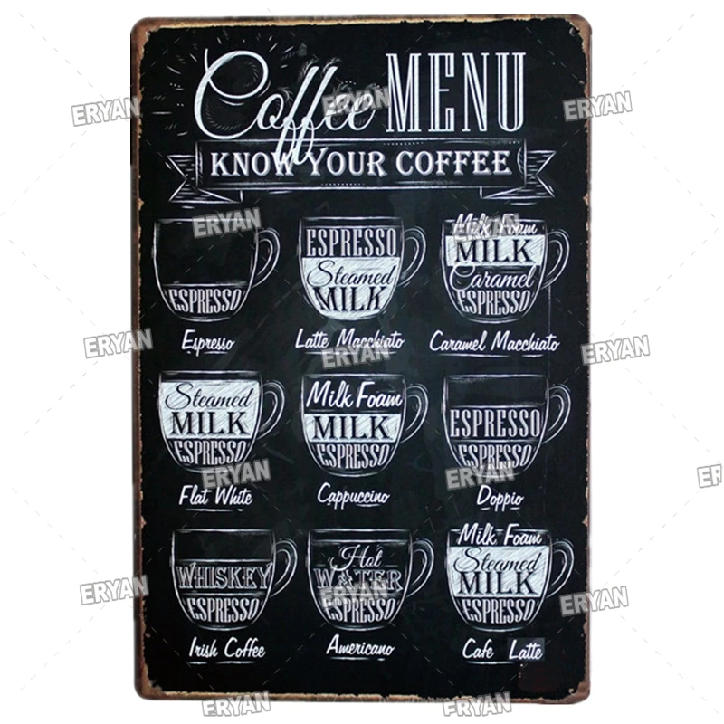 Металлическая табличка в виде меню кофе, Жестяная Табличка, ретро, ...