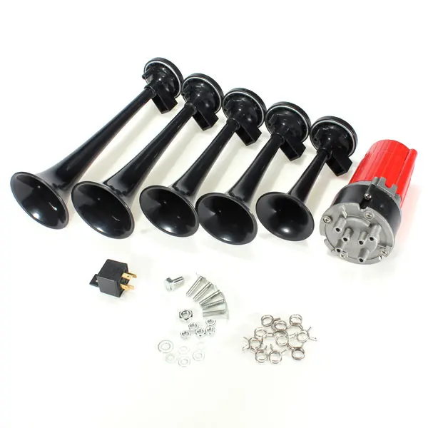 Посылка включает в себя:5 х трубные воздушные рожки1 х воздушный компрессор1 X Воздушная трубка1 X монтажное оборудованиеРеле 12 В-1 шт.