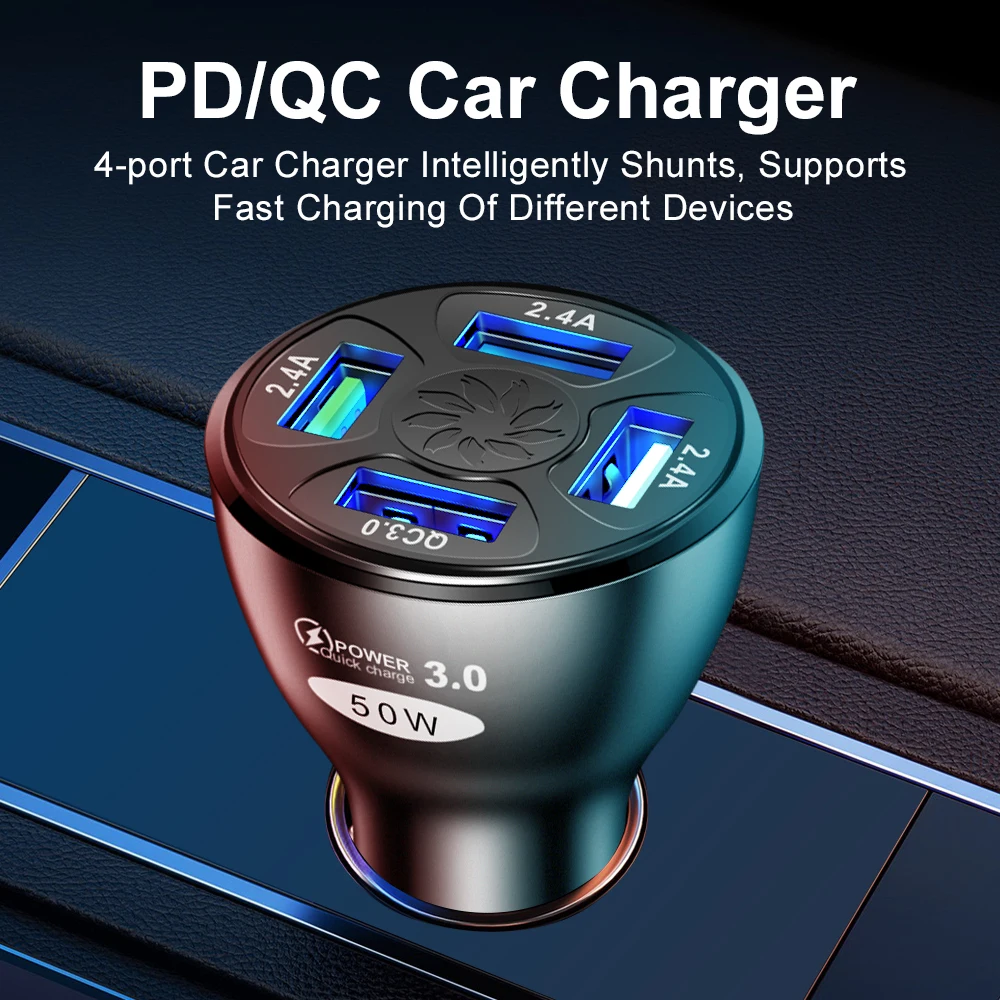 Автомобильное зарядное устройство для быстрой зарядки 50 Вт 4 USB Q...